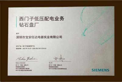 榮獲深圳市首家“西門(mén)子鉆石盤(pán)廠(chǎng)”榮譽(yù)稱(chēng)號(hào)。開(kāi)平任達(dá)電器取得“ISO14001:2015環(huán)境管理體系證書(shū)”