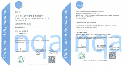 開(kāi)平任達(dá)電器取得“IATF16949:2016汽車(chē)行業(yè)質(zhì)量管理體系證書(shū)”