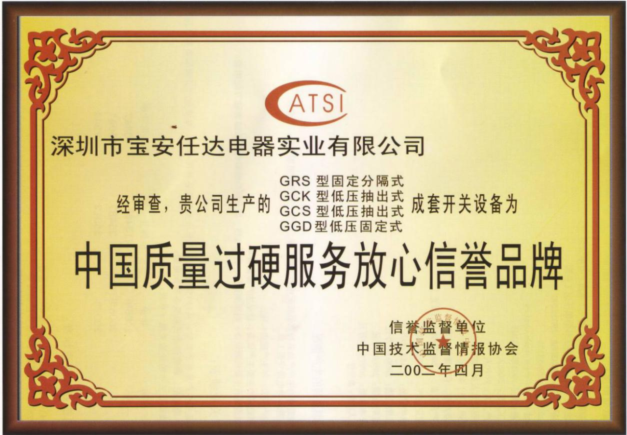 中國質(zhì)量過硬服務(wù)放心信譽品牌