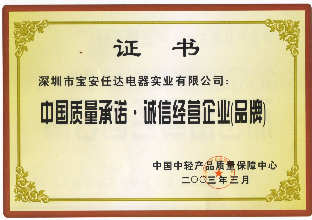 中國質(zhì)量承諾·誠信經(jīng)營企業(yè)