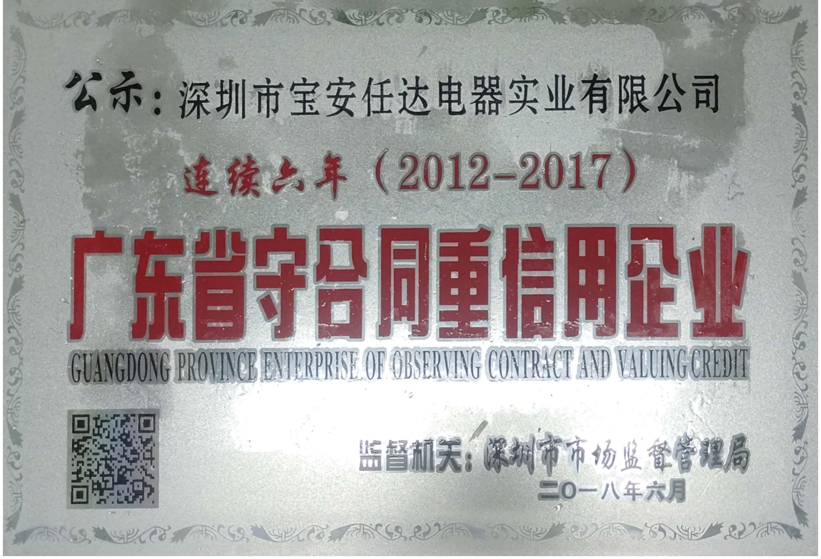 2012-2017年度廣東省守合同重信用企業(yè)