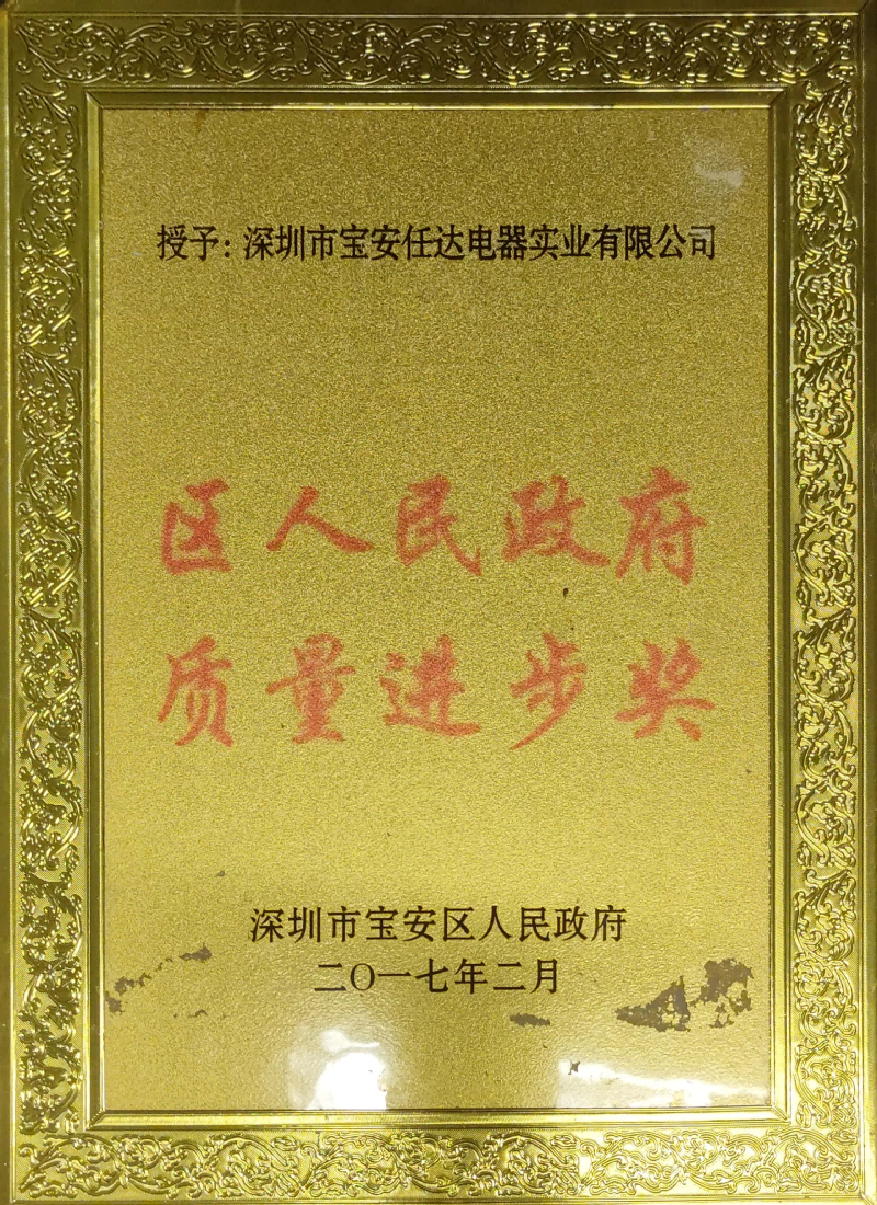 區(qū)人民政府質(zhì)量進(jìn)步獎