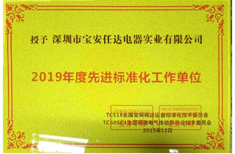 2019年度先進(jìn)標(biāo)準(zhǔn)化工作單位