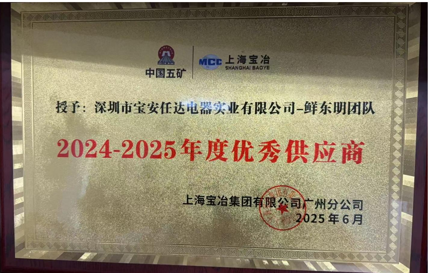 中國五礦2024-2025年度優(yōu)秀供應(yīng)商