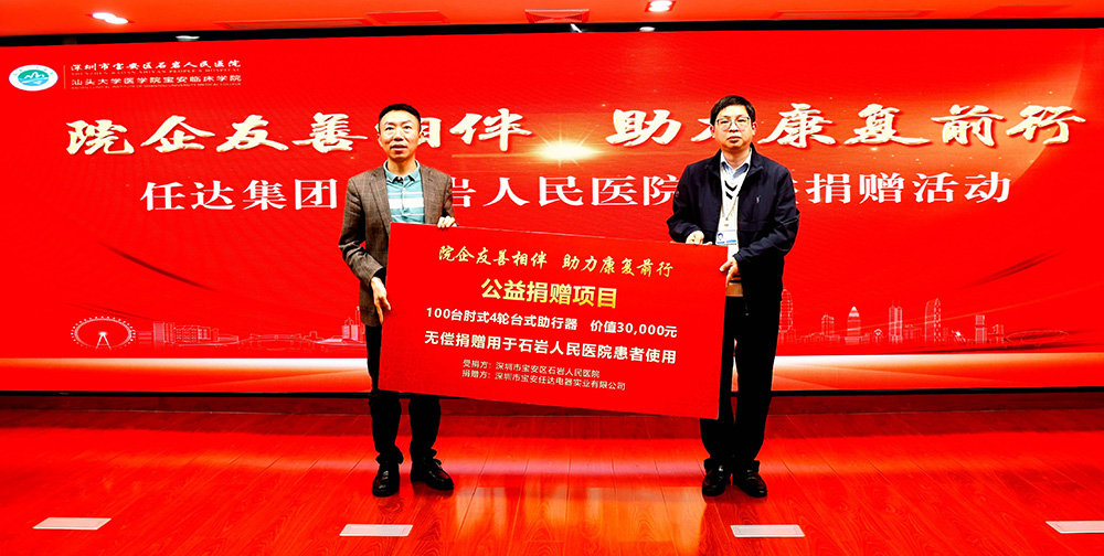 In order to practice corporate social responsibility and promote the development of regional medical industry, on March 20, 2025, Renda Group and Shiyan People's Hospital of Bao'an District, Shenzhen jointly held the "Rehabilitation Medical Public Welfare Donation Ceremony". With the core of "hospital-enterprise friendly companionship, helping rehabilitation move forward", this activity provided hardware support for the rehabilitation treatment of medical patients in Shiyan Street through the donation of 100 elbow 4-wheel desktop walkers worth 30,000 yuan, demonstrating the public welfare power of hospital-enterprise cooperation in the new era.