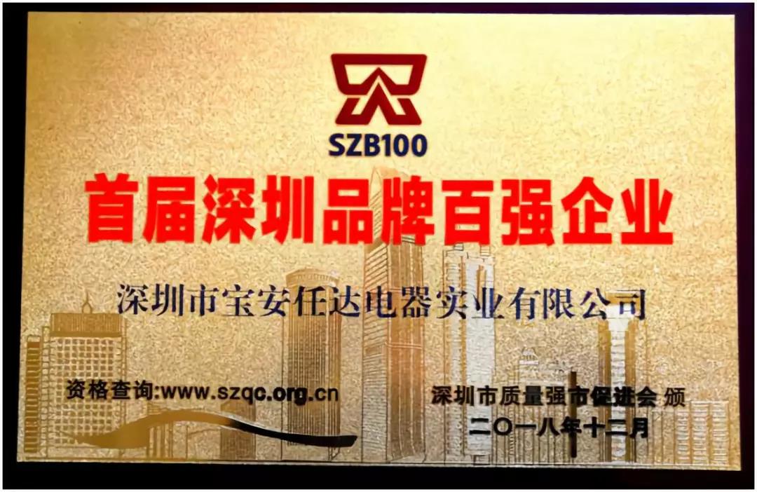 深圳市寶安任達(dá)電器實業(yè)有限公司榮登“首屆深圳品牌百強(qiáng)企業(yè)”榜單